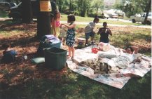 buckets with donated vinyl sign material. Here the kids are enjoying