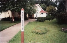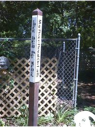 A Peace Pole at Atlanta Friends Meeting Quaker House, 701 W. Howard Ave in Decatur (404-377-2474) Long-time peace friend Fred Stevens invited us to the dedication in 2000. |