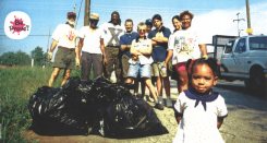 Here the neighborhood volunteers pick up litter.